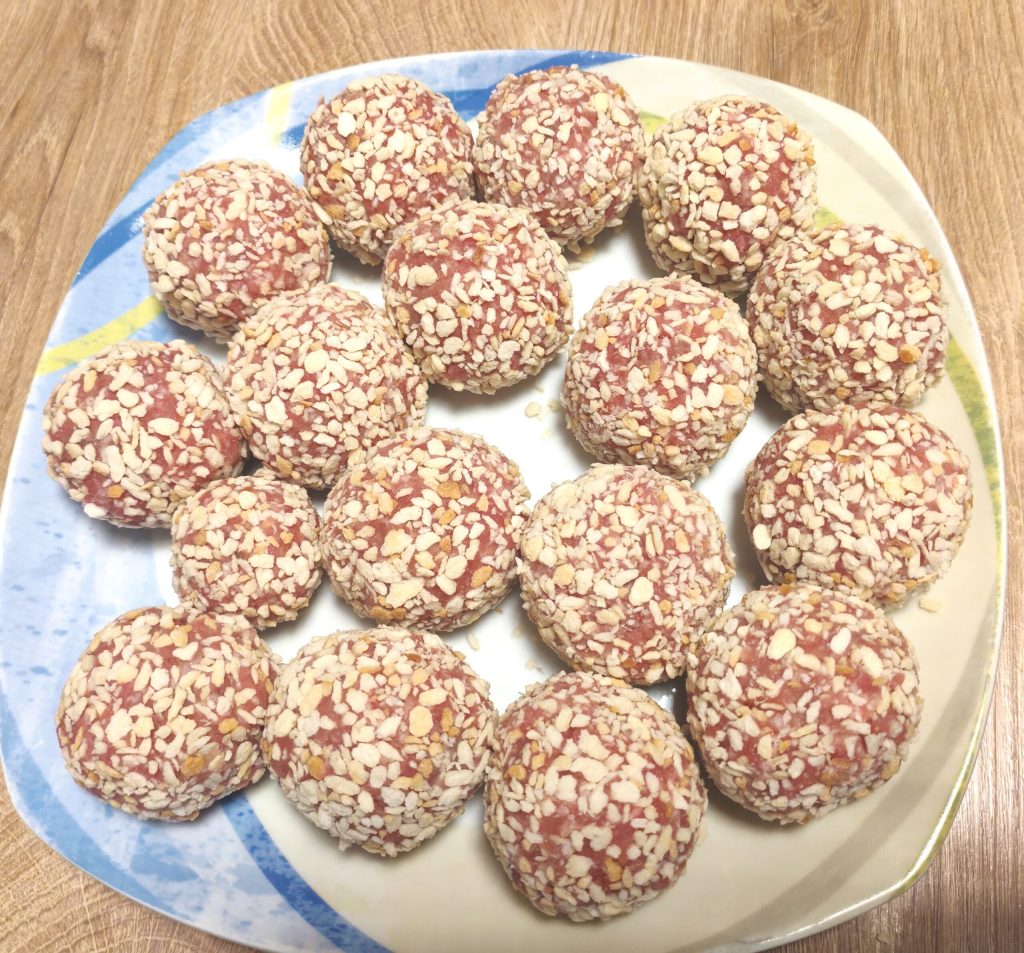 Cuando hayáis empanado todas las albóndigas, dejadlas reposar en la nevera durante unos 20 minutos