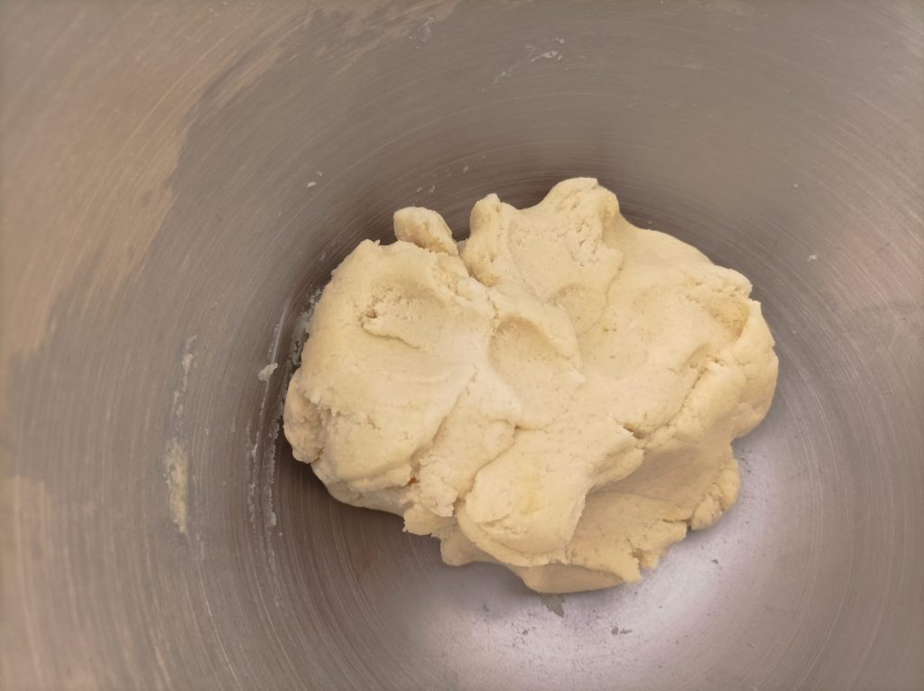 En un robot de cocina pon la harina y la manteca en trozos, enciende la máquina con el gancho tipo k y haz que la masa se vuelva arenosa. Luego añade el azúcar, el huevo y la ralladura de limón y enciende la máquina.