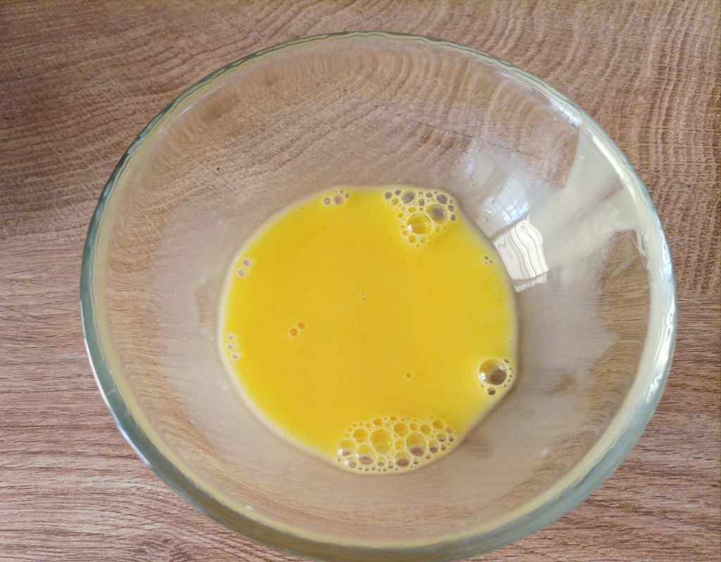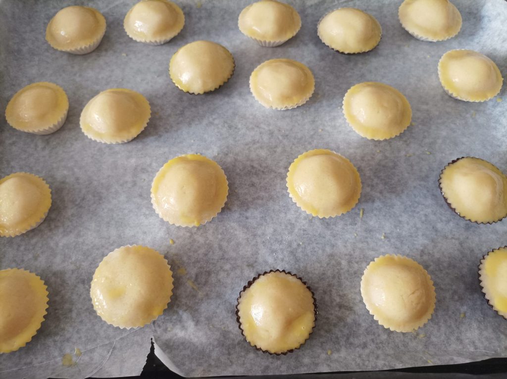 Batir una yema con un chorrito de leche. Saca los bocconotti de la nevera y pincela la superficie con la yema.