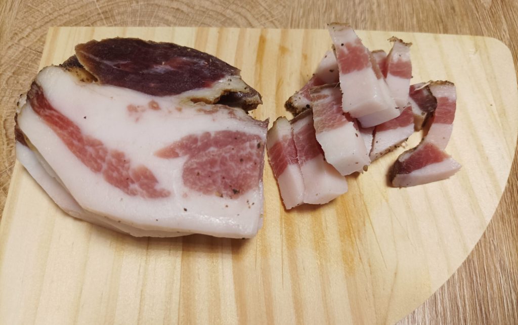 - 200 g guanciale (50 g por persona)