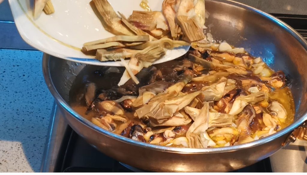 ¡Los espaguetis con mejillones y alcachofas están listos!