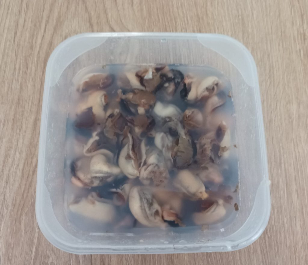 Vuelve a poner las almejas en la sartén, enciende el fuego nuevamente y agrega los mejillones reservando su agua.