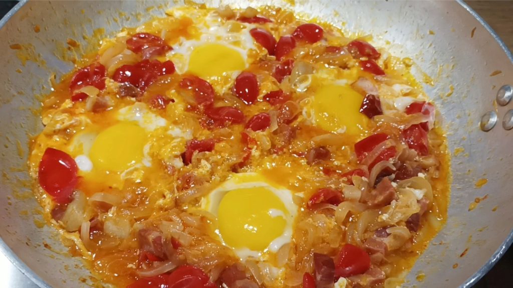 los huevos con cebolla es un plato pugliese humilde pero lleno de sabores muy simples. Una preparación facilísima con ingredientes que todos tienen en casa, sabroso y delicado para servir como segundo plato o plato único. Principalmente es un plato que se prepara en invierno, pero os garantizo que también en verano va genial porque es rápido y es una buena elección si con amigos se quiere llevar a la mesa los sabores de nuestra amada Puglia. Hoy para dar valor a un plato intentamos crear platos extremadamente complicados con ingredientes a veces difíciles de encontrar para todos mientras que en la antigüedad bastaban los productos que daba la tierra para preparar platos maravillosos. En esta receta los preparo como siempre los he comido de niña con un ingrediente adicional como el bacon ahumado. Si aún no los habéis probado os recomiendo hacerlo lo antes posible….