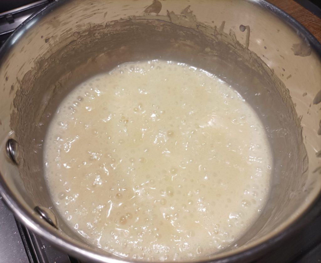 La leche condensada está lista. Cubre con film transparente y deja enfriar antes de usarla.
