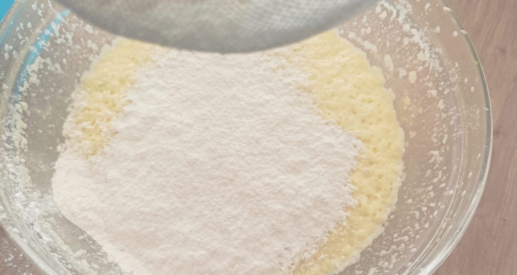 En este punto, comenzad a añadir poco a poco la harina tamizada mezclada con el polvo de hornear. Añadid la canela y unid bien todo.