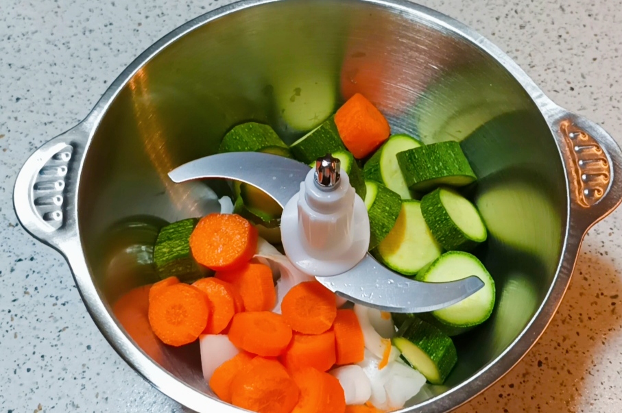 Corten en trozos la zanahoria, el calabacín y la cebolla y píquenlas.