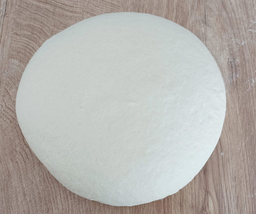 En este punto solo queda la extensión, tomad un bollo y trabajadlo poniendo bastante sémola remolida o harina sobre la base de trabajo, extendiéndolo desde el centro hacia el borde girando el bollo, así tendréis la parte central fina y el borde alrededor.