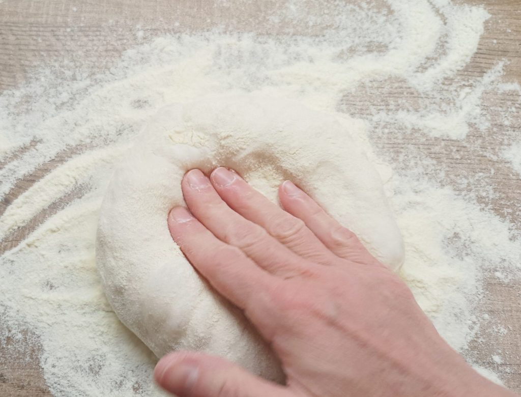 Comenzad a trabajar la masa hidratando la harina, obteniendo al final un compuesto compacto.