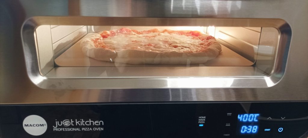 Ahora podréis condimentarla como más os guste, ponedla sobre la pala, será muy elástica, y horneadla calentando antes el horno como indicado, alcanzando la temperatura de 400° durante 2 minutos.