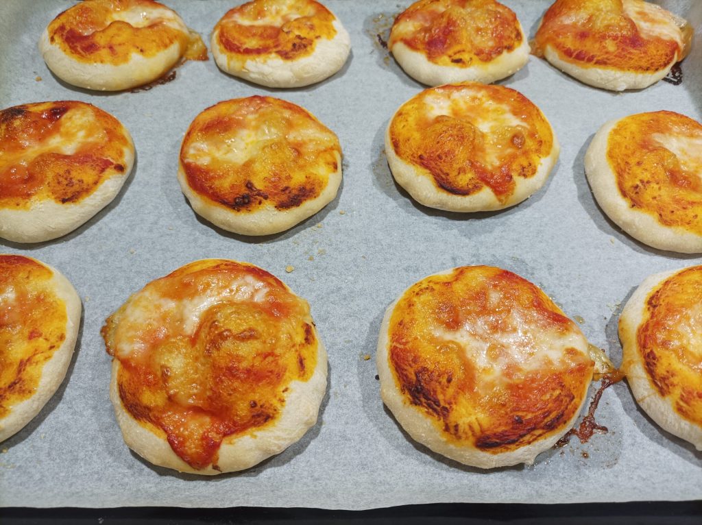 Las pizzetas se pueden aderezar como prefieras, con verduras, salchichas, jamón, blancas con sal y orégano, etc.