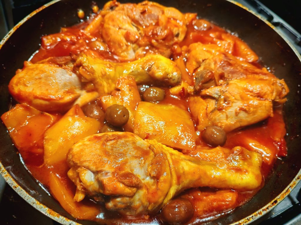 El pollo con pimientos es un segundo plato rústico y sabroso, tendrás el pollo jugoso y cremoso con una combinación perfecta de los pimientos y toda su dulzura. Un plato fácil de preparar, yo he utilizado por elección, muslos y contramuslos, porque tienen más carne y no quedan secos como podría ser la pechuga, este es un pollo de corral de una granja de Puglia, pero vosotros podéis utilizar las piezas que más os gusten, también con los pimientos, elegid vosotros….Como variante a la clásica receta romana, he añadido aceitunas que no quedan mal en absoluto, de hecho, si os gustan os las recomiendo. ¡Entonces no os queda más que probarlo!
