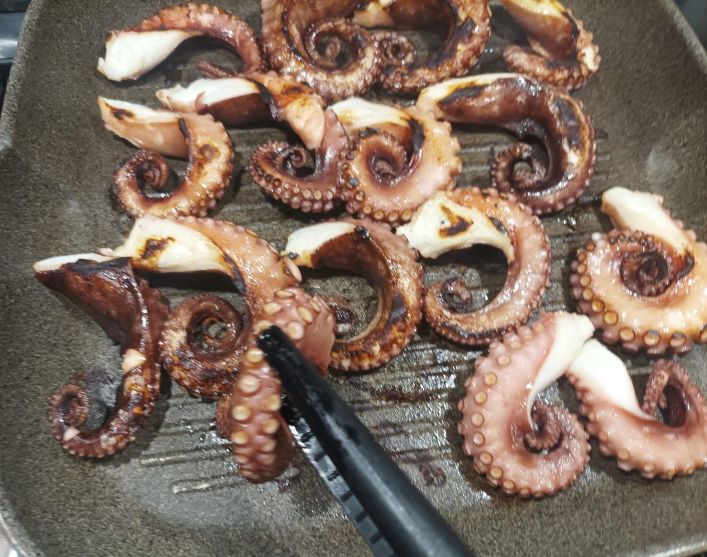 ¡El pulpo asado está listo! ¡Wow!