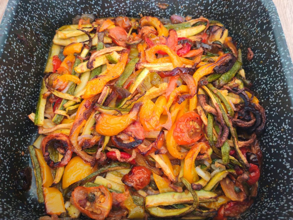 Todavía me sorprende cómo platos tan simples pueden impresionar con su sabor. En esta receta he preparado una ratatouille muy sencilla en freidora de aire, un guiso de verduras de origen francés, sabroso, ligero y colorido, un acompañamiento perfecto especialmente en el periodo veraniego y con este método de cocción se vuelve también muy rápido. Yo he elegido como verduras el calabacín, los tomates, la cebolla roja y los pimientos, manteniéndome más cerca de la versión original… sin añadir muchas especias, solo ajo en polvo, aceite y sal, como variante personal he añadido algunas alcaparras para dar un sabor más rústico. Nuestra versión italiana es la caponata, la peperonata, la ciambotta, etc. Podéis cambiar y elegir las verduras que más os gusten o aromatizar con otras especias. No hay mucho más que decir, así que solo queda probar y degustar!