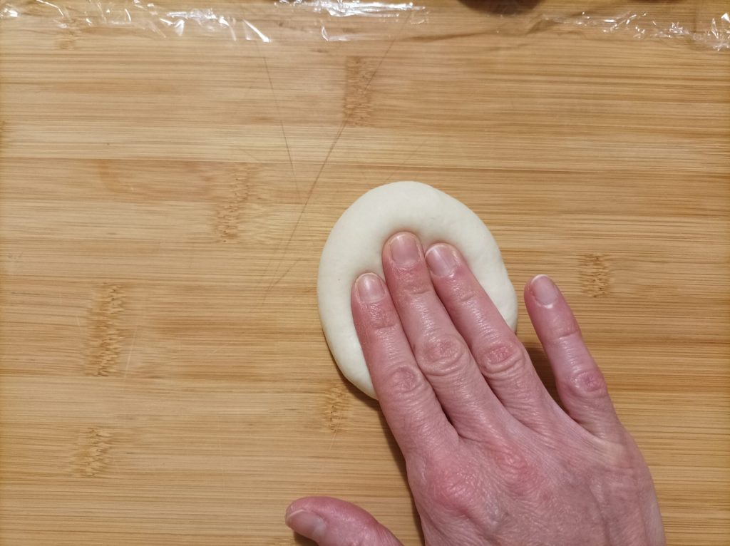 Forma un «saquito», voltea la bolita con el cierre hacia abajo y redondéala en la palma de la mano.