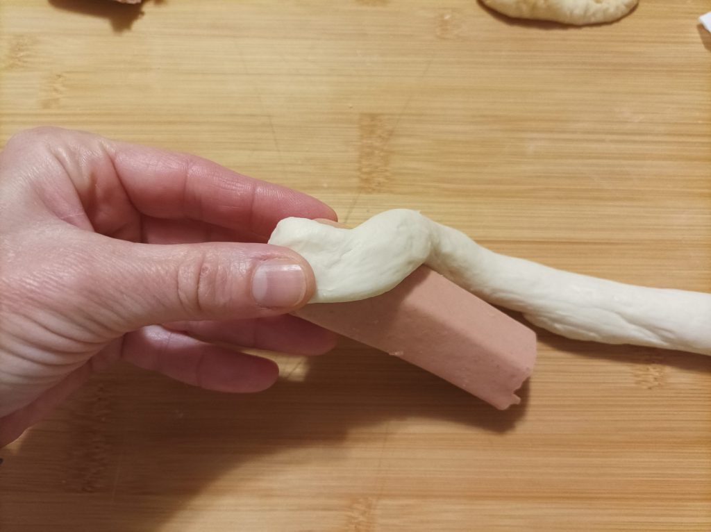 Procede con el rollò, a diferencia de las otras piezas, aquí debes formar un cilindro más o menos largo como la salchicha que usarás.
