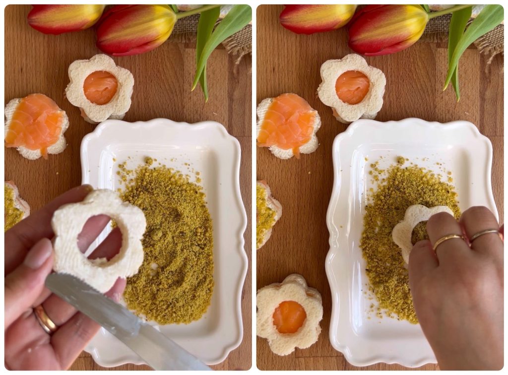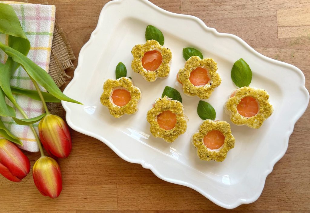 Flores de aperitivo con Salmón ahumado y pistacho, una idea para un delicioso aperitivo primaveral perfecto para una comida importante, un picnic o un aperitivo informal!