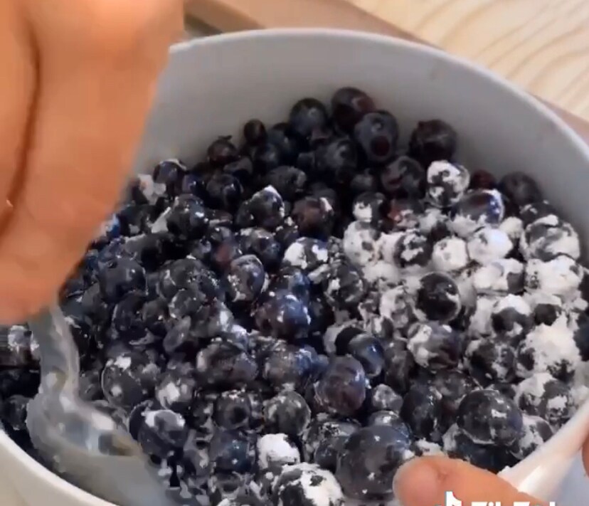 Desgranarla uva en un bol, lavarla y secarla. Añadir el azúcar glas y mezclar bien, dejando reposar el mayor tiempo posible, mínimo una hora.