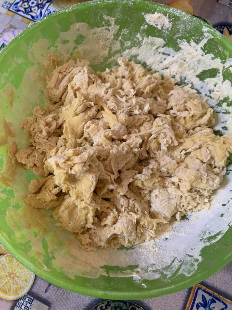 El ingrediente principal de este pan es el preparado para pan de cúrcuma. En el que compré yo había dos sobres de levadura seca con los que hacer el pan. Yo obviamente las rechacé y creé una receta para masa madre, añadiendo también una parte de harina 0. No añadí sal porque ya estaba presente en la mezcla. Estas harinas son relativamente débiles por lo que con este calor fermentan bastante rápido. Se puede hacer con la levadura seca proporcionada y, en ese caso, fermenta en mucho menos tiempo.