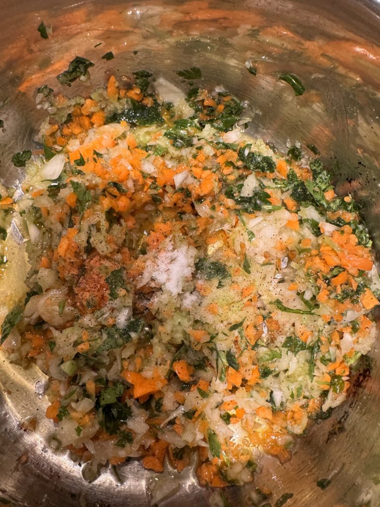 Añadir luego abundante perejil picado. En este caso he usado tanto perejil fresco como congelado, ambos valen.