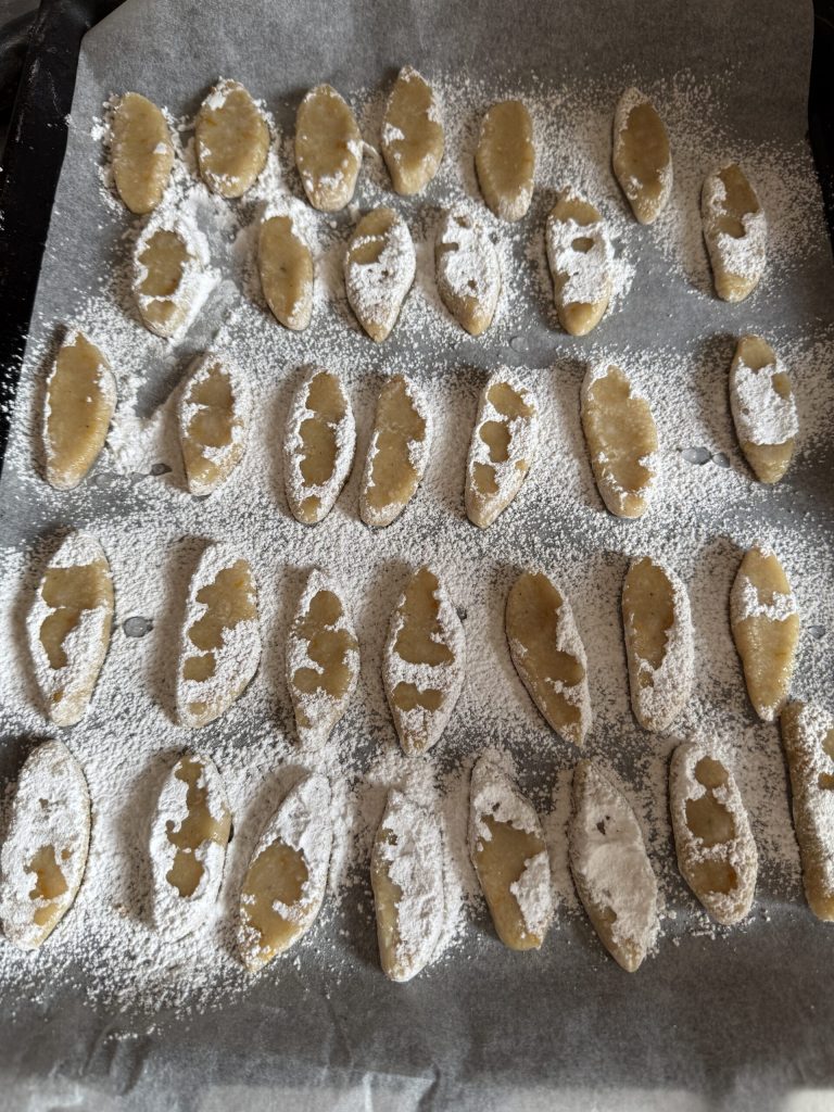• A medida que se van formando, colocar los Ricciarelli de Siena en una bandeja cubierta con papel de horno.
