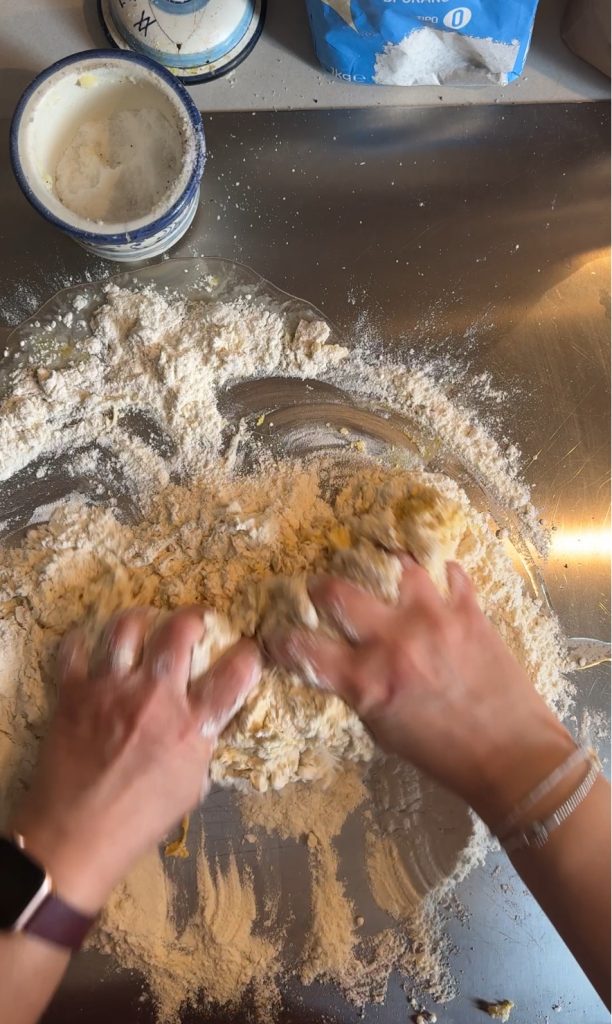 • Una vez que la masa esté elástica y firme, formar una bola, cubrirla con papel film y un paño de cocina y dejar reposar 30/45 minutos.