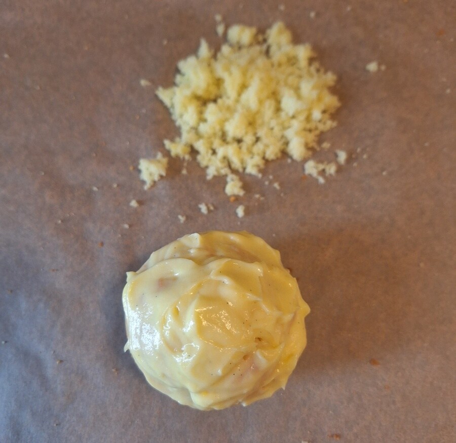 Cierra el muffin con la cúpula y cúbrela con una capa delgada de crema.