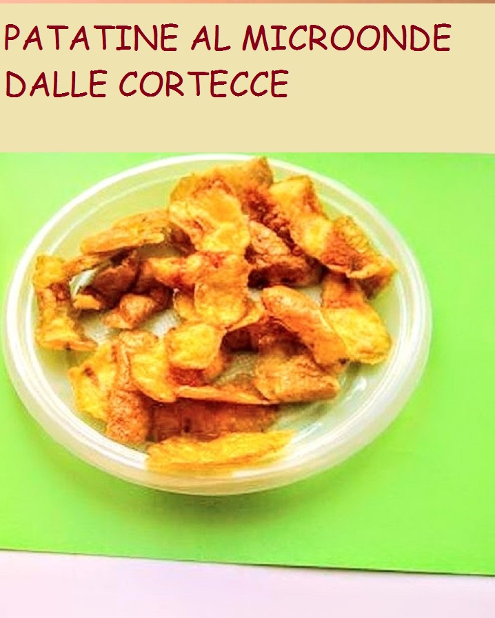 Las patatas fritas con piel cocinadas en el microondas son crujientes y les encantan a los niños. Son especiales por dos razones: La cocción en el microondas, sin ensuciar la cocina de grasa y esto es realmente alentador. Se utilizan nada menos que las pieles de las patatas, ¡qué idea tan extraña! 🙂 ¿lo sabíais? Hace poco tiempo hice este descubrimiento y quise probarlo y me siento satisfecha. Son las pieles de la fruta o verduras las que contienen buena parte de las vitaminas y de los minerales. Y nosotros habitualmente las tiramos a la basura, qué pena. No tenemos la sana costumbre de comer la fruta entera con piel. Hay que decir también que, sin embargo, no se puede uno fiar ya que a menudo en el cultivo se utilizan productos pesticidas que son dañinos para nuestra salud y por lo tanto es preferible no hacerlo. Si sin embargo tenéis la posibilidad de comprar verduras orgánicas, entonces recomiendo probar estas patatas fritas con cortezas.