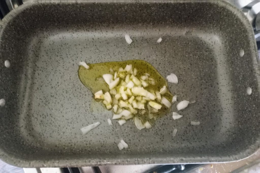 En una cazuela vertemos un poco de aceite de oliva virgen extra y la cebolla picada, sofreímos suavemente.