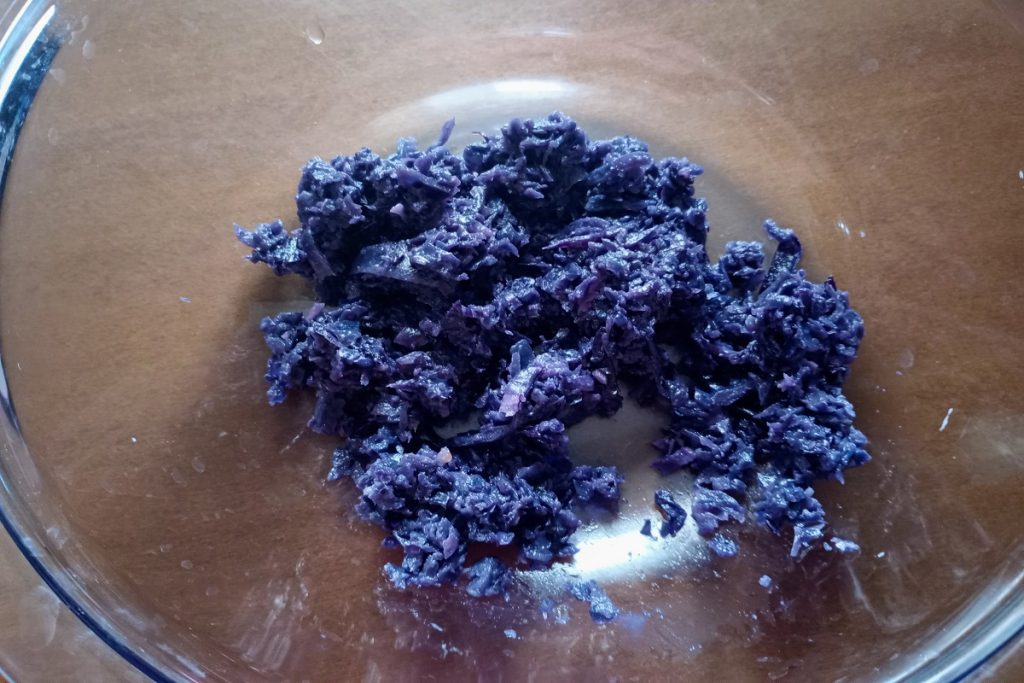 Vertemos la col lombarda en una batidora y trituramos groseramente.