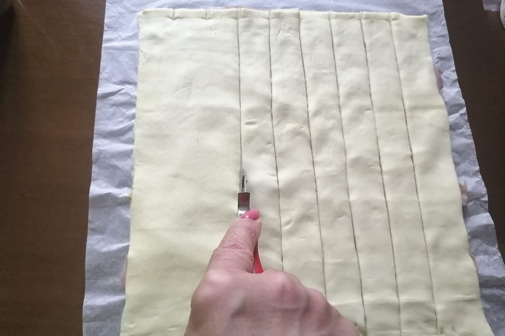 Con el cortador hacemos tiras de un ancho de 3 cm.