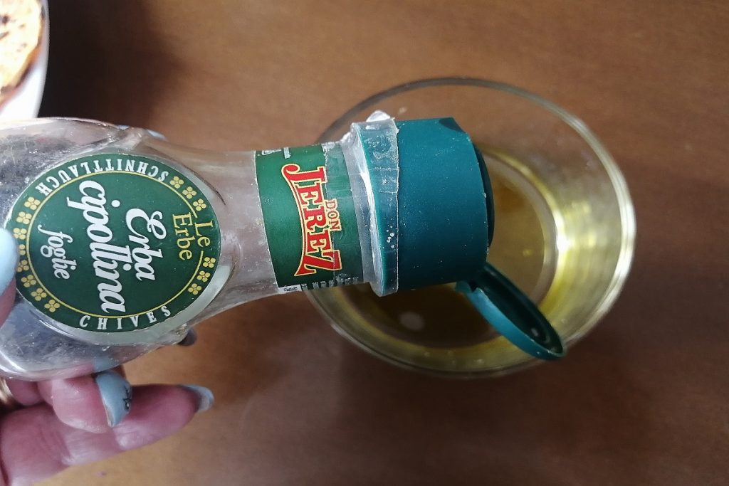Después de asar todas las rodajas, vertemos el aceite para el condimento en un bol y añadimos cebollino, ajo, orégano.
