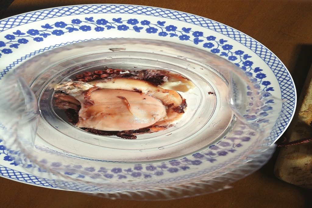 Pasado el tiempo, sacamos el pulpo de la botella que habrá tomado la forma.
