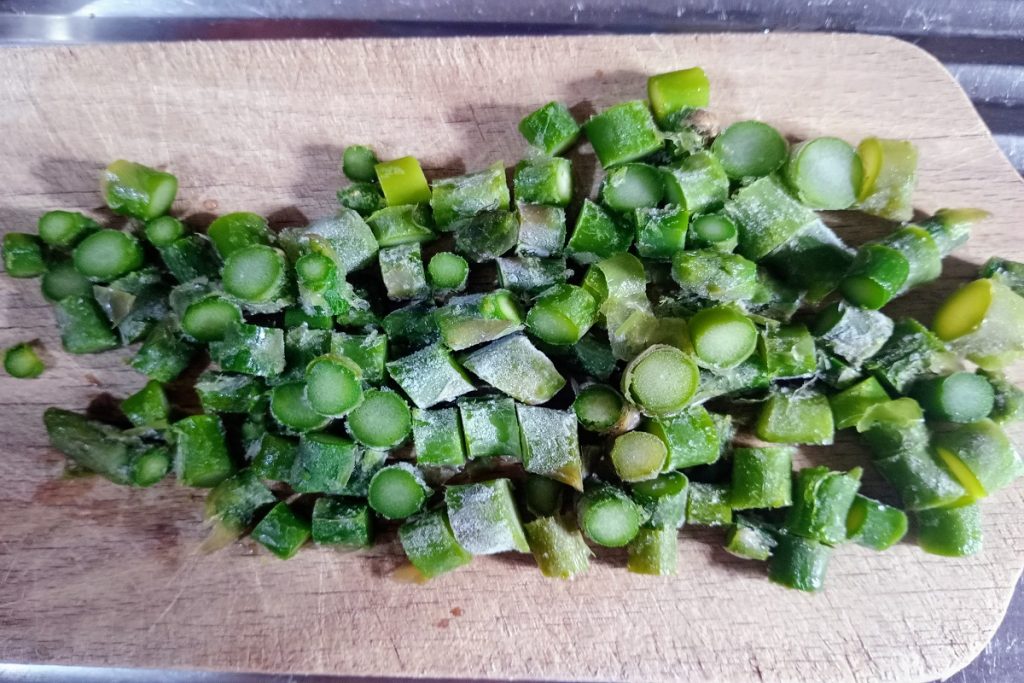 En mi caso he utilizado los congelados que ya están limpios, por lo que los he cortado en trozos pequeños.