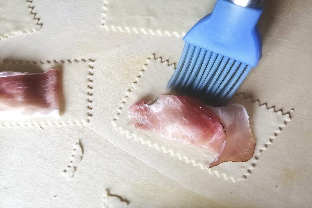Humedece los bordes del rectángulo con agua con un pincel de cocina.