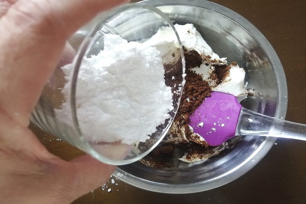 En un bol ponemos el mascarpone, el café soluble en polvo y el azúcar glas.