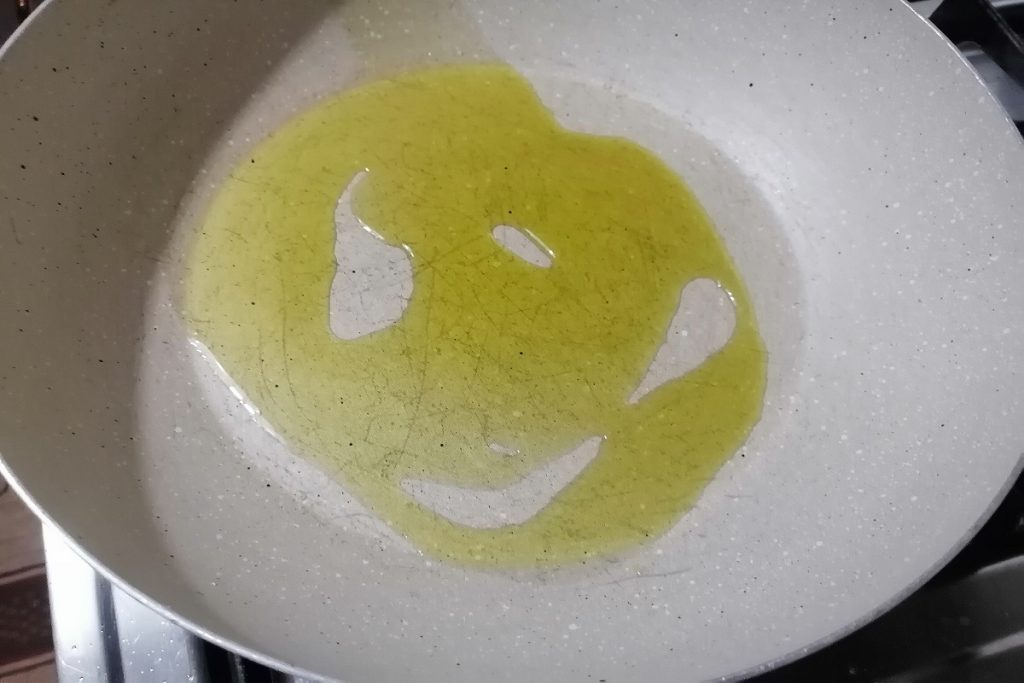 • En una sartén vertemos aceite de oliva virgen extra, lo ponemos al fuego.