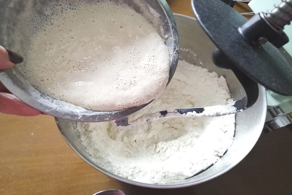 Para la preparación de las cuddure hay que preparar la masa madre (lievitino) vertiendo un vaso de agua sobre la levadura fresca desmenuzada; mezclad cuidadosamente para que se disuelva bien.