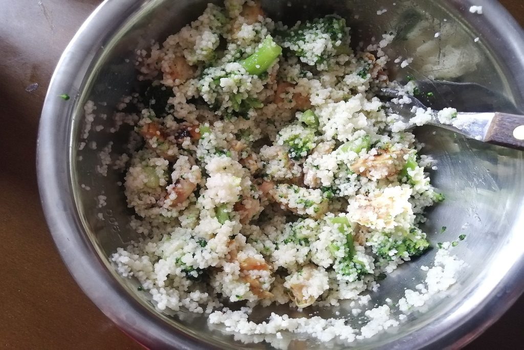 cuscús con brócoli, pollo y granada