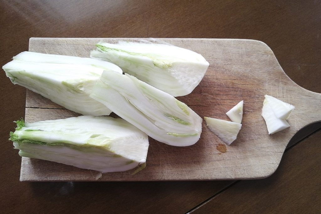 • Lavad y limpiad el hinojo de las partes duras y el tallo, guardando un poco aparte.