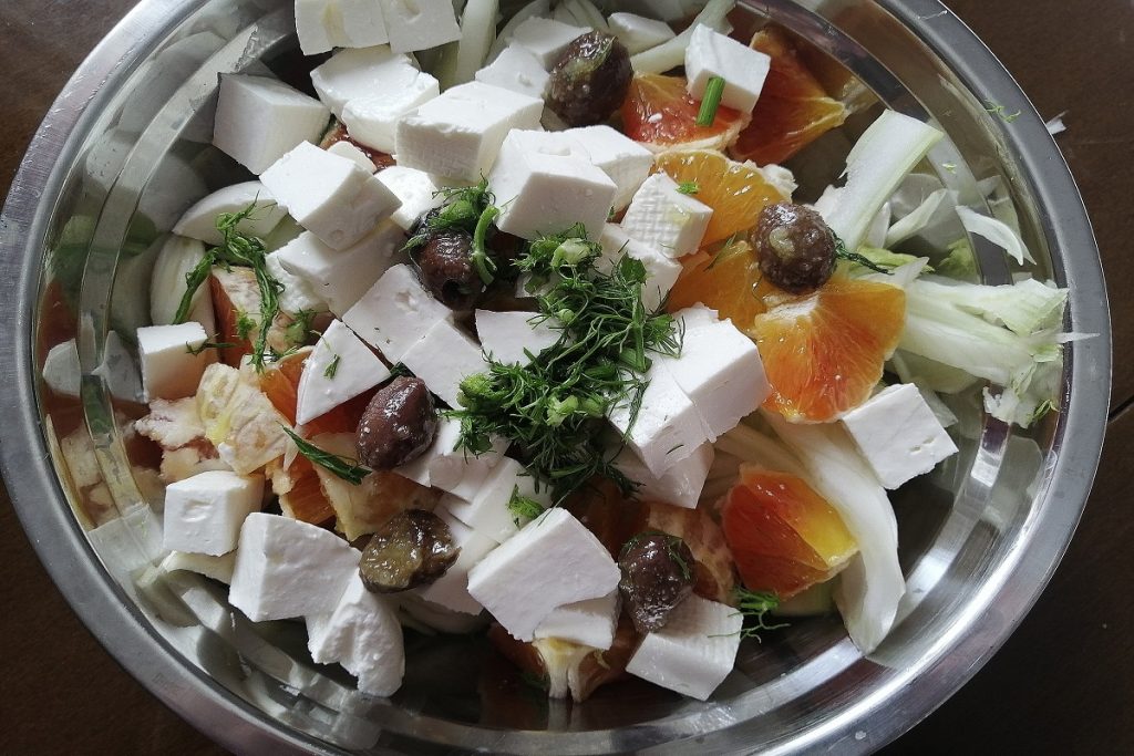 Ensalada de hinojos, naranjas y queso fresco
