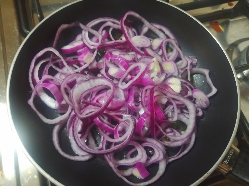 Empezamos limpiando y cortando la cebolla, separando los aritos en la medida de lo posible.
