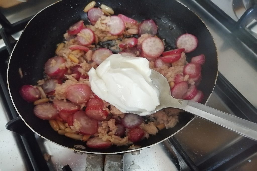 Los fusilli con atún, rábanos y piñones son un primer plato sencillo, económico… ¡un primer plato cremoso para chuparse los dedos!