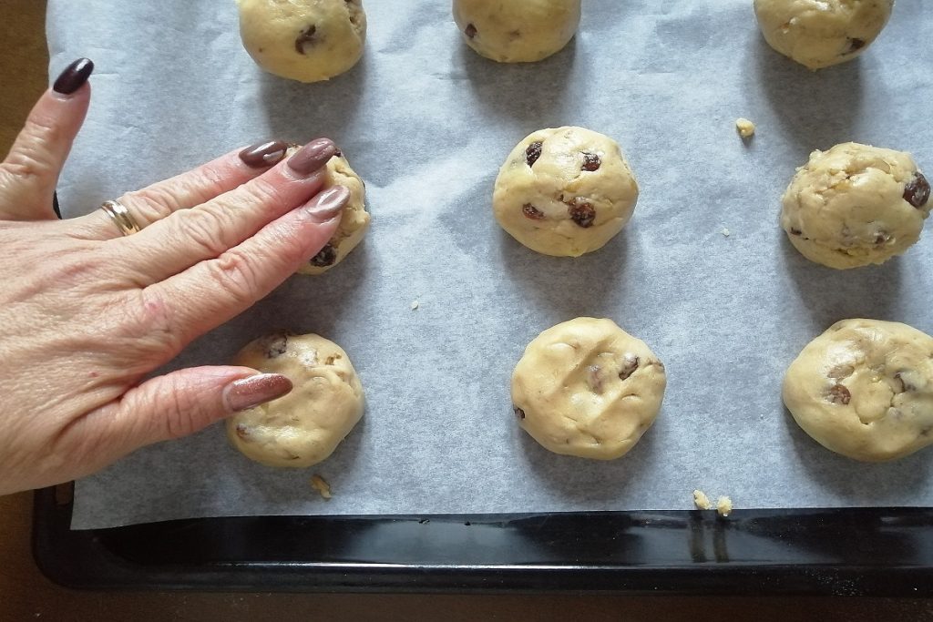 Las galletas de pasas y nueces resultan crujientes al morder y muy aromáticas gracias al intenso aroma a naranja; notaréis la crocancia de las nueces y la suavidad de las pasas.