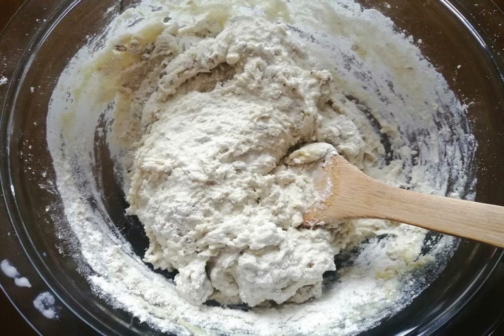 Añadid a la harina los líquidos y la levadura disuelta.