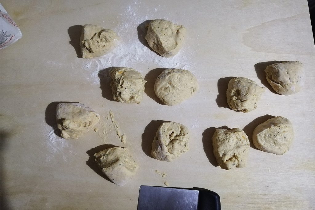 Dividid la masa en porciones de 100 g cada una y formad bolitas.