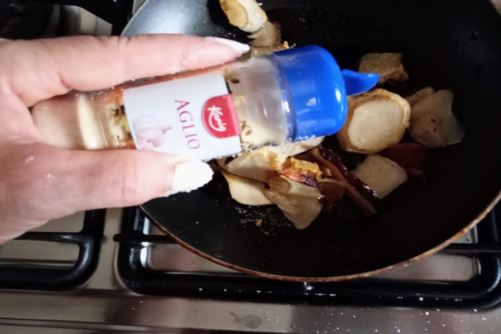 Salteamos en la sartén durante 4/5 minutos mezclando, añadimos un poco de agua para cocinar otros 5 minutos.