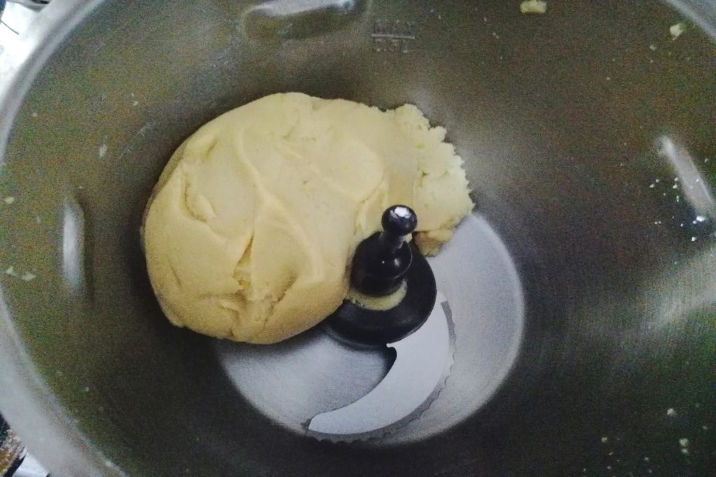 Trabaja la harina con el azúcar glas, la levadura y la manteca de cerdo blanda, yo lo hice con el robot de cocina, pero si no lo tienes, hazlo con las manos en un bol.