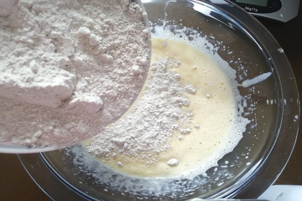 Terminamos la receta con la adición de la harina mezclada con la levadura.
