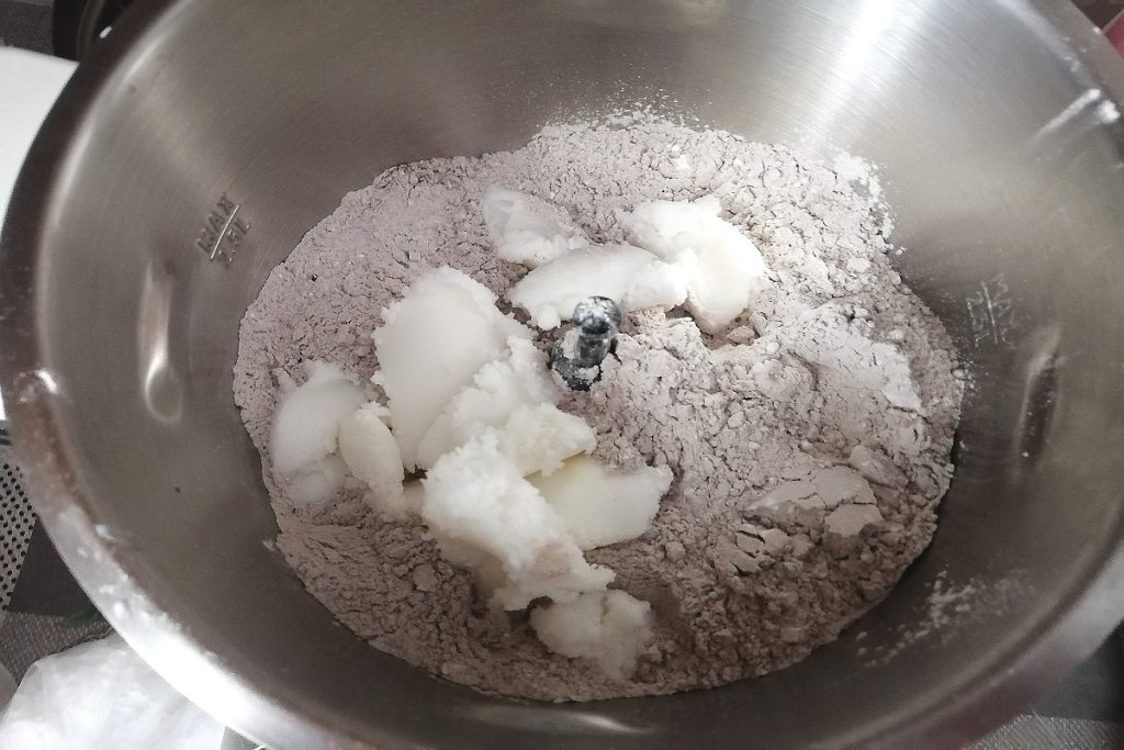 En un bol mezclamos la harina, el azúcar glas y el cacao.