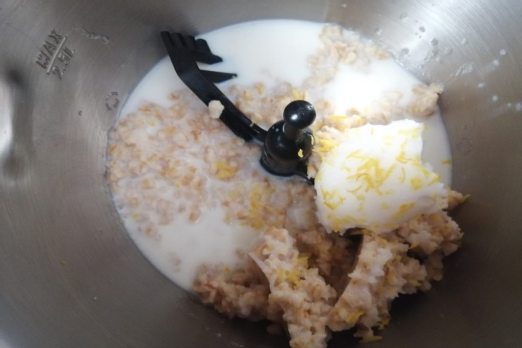Vertemos el trigo cocido escurrido en una olla o en el vaso del robot junto con la leche y la manteca.